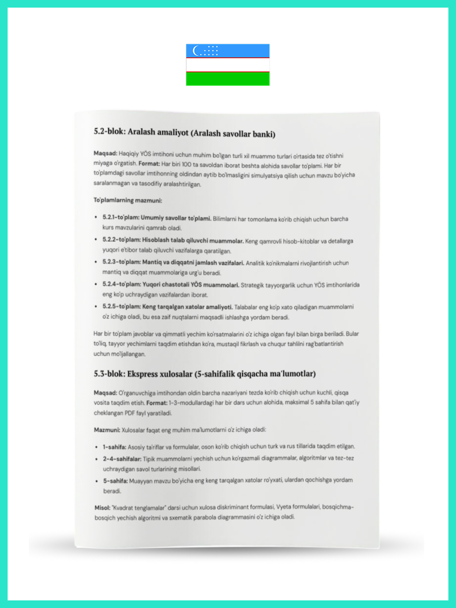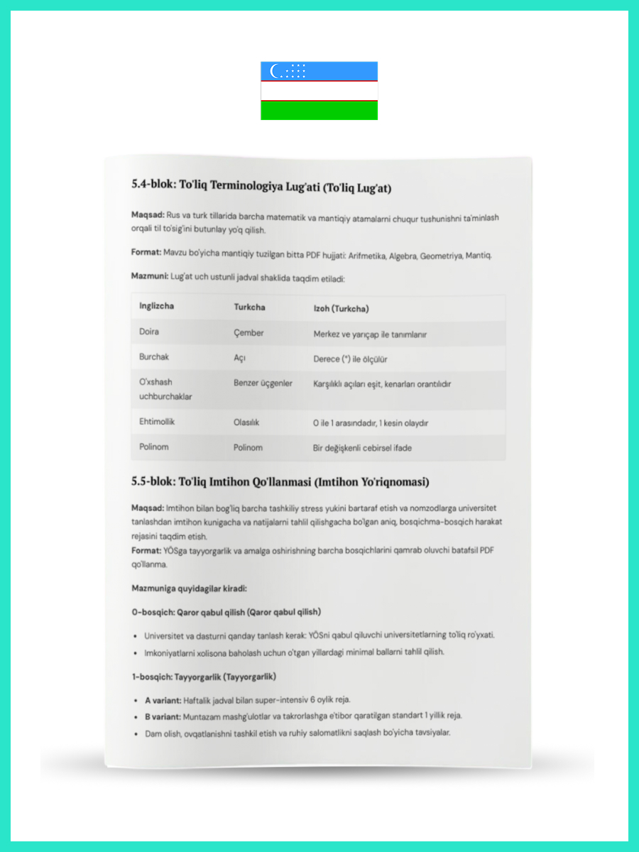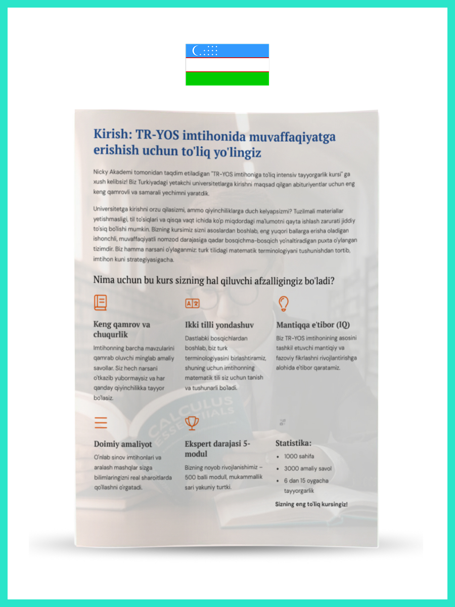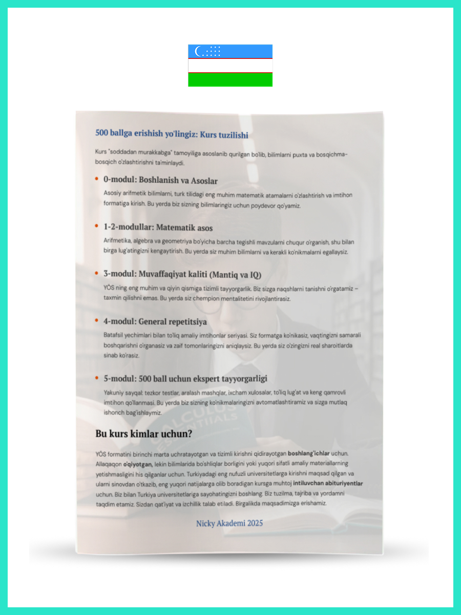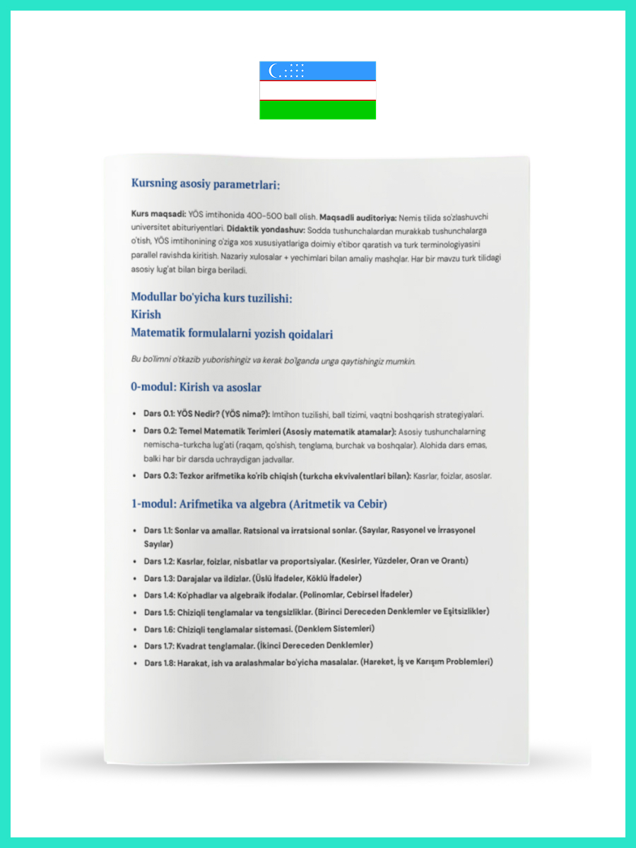 Comprehensive Intensive YÖS Preparatıon Course Uzbek edition E-Book (YÖS’e yönelik kapsamlı yoğun hazırlık kursu (Özbek) E-Book