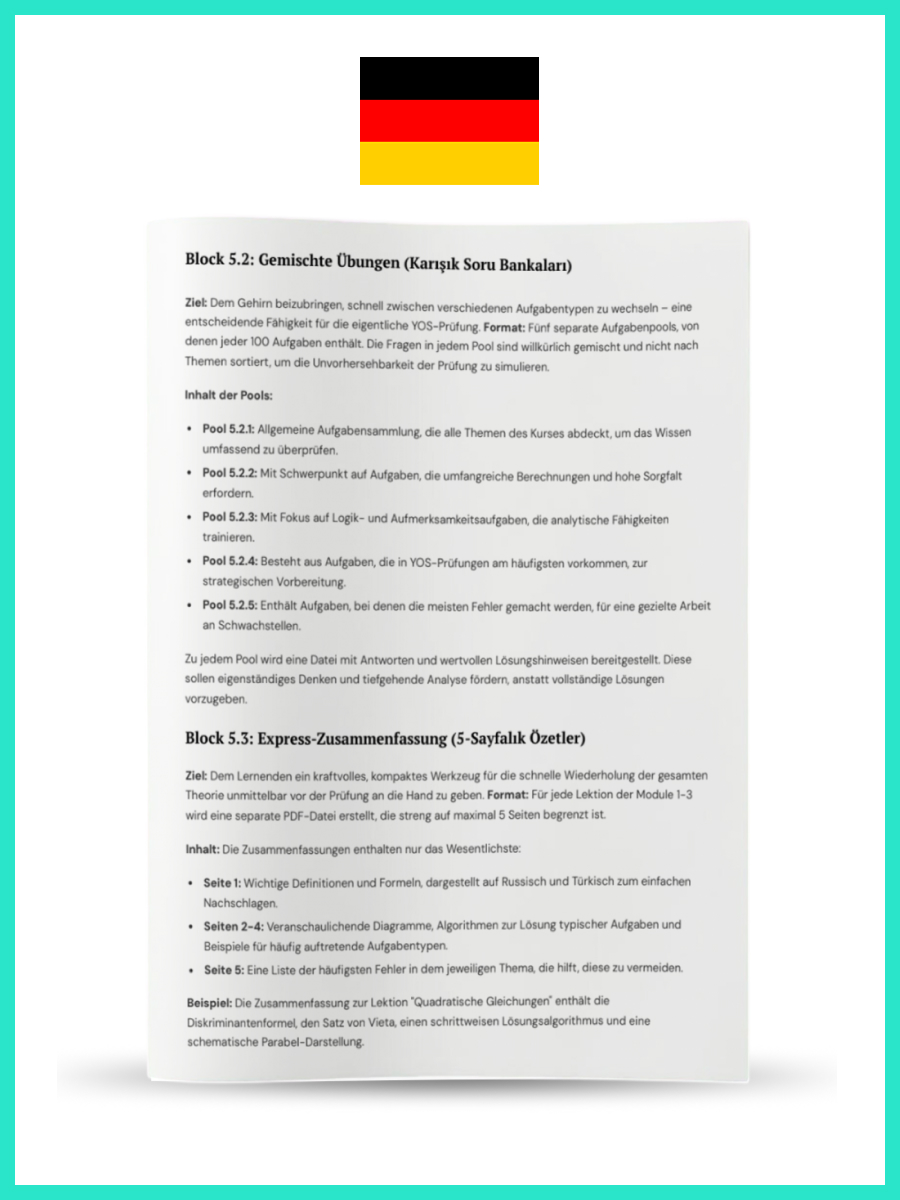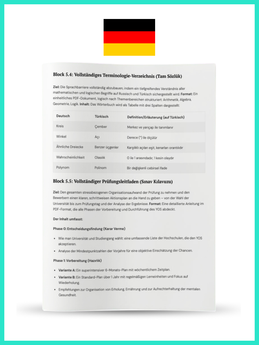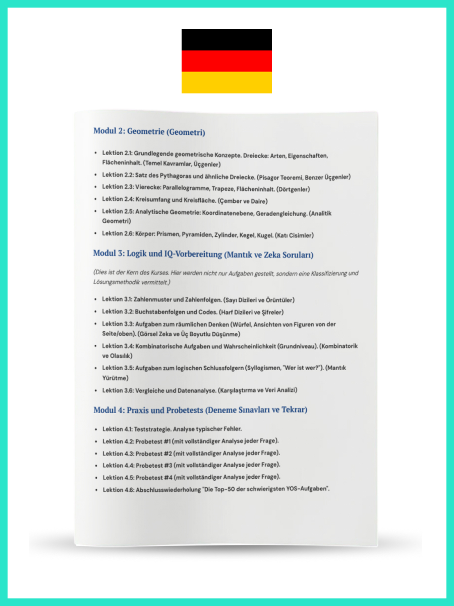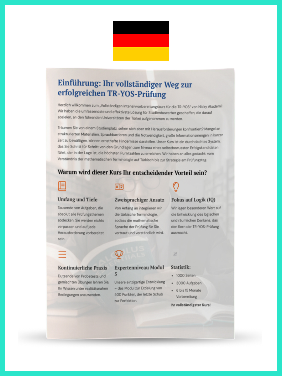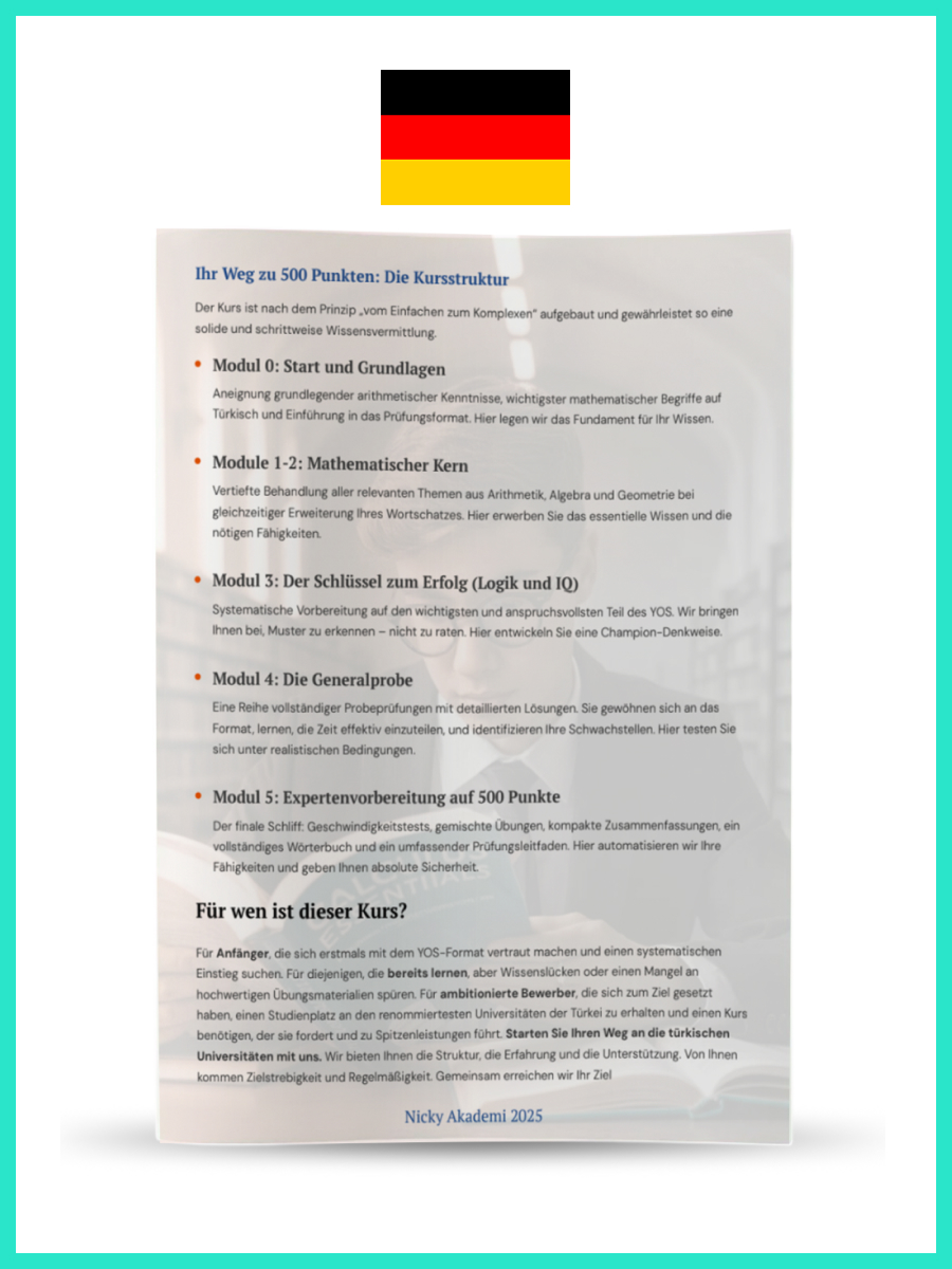 Komplett-Kurs zur intensiven Vorbereitung auf die YÖS Prüfung (YÖS’e yönelik kapsamlı yoğun hazırlık kursu)