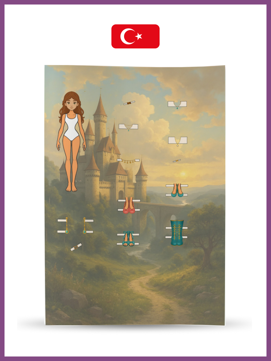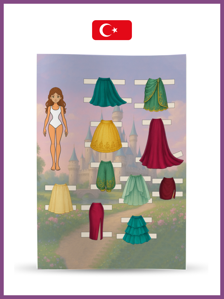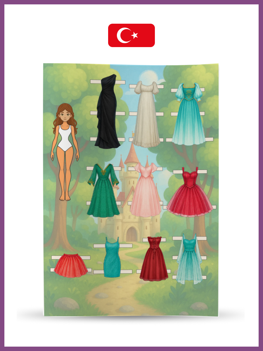 12 cm kağıt bebekler. Bebekleri ve giysileri kağıttan emniyet makasıyla dikkatlice kesin, bu işlem için yetişkinlerden yardım isteyin. Ardından farklı giysi koleksiyonlarıyla bebekleri giydirerek oynayın — kombinleyin, eşleştirin, hayal gücünüzü kullanın ve eğlenin!