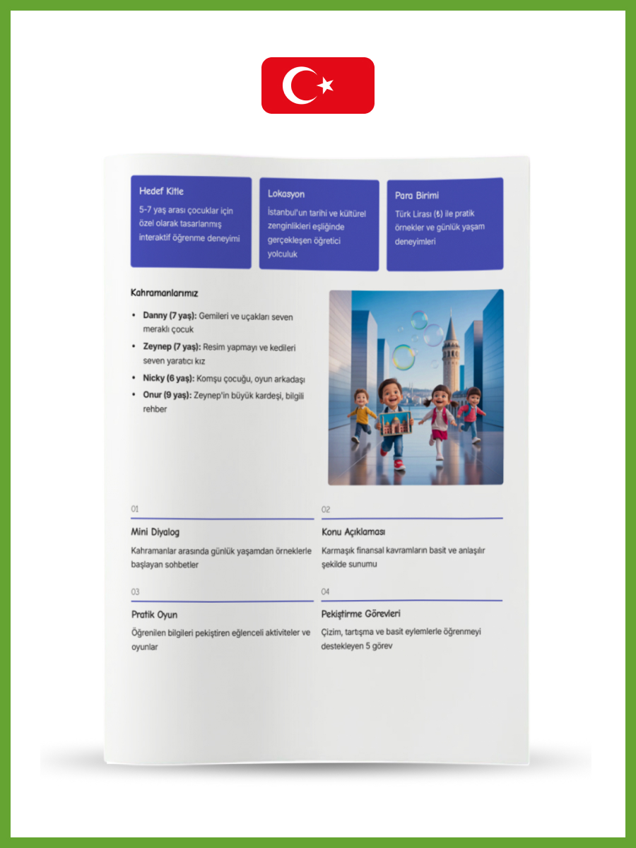 Seviye 2 (6-7 yaş) : Finansal Maceralar: Danny ve Zeynep’in İstanbul Yolculuğu. 48 Sayfa.