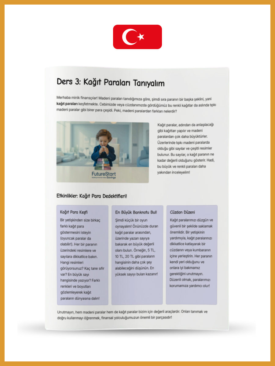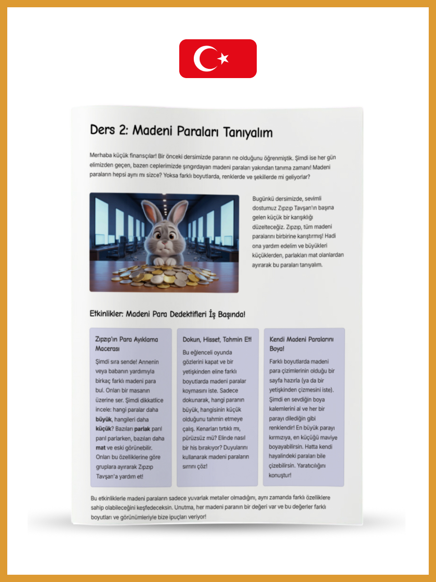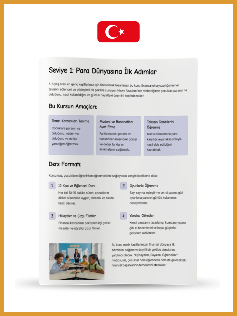 Seviye 1 (5-6 yaş): ‘Para dünyasına ilk adımlar: En genç kaşifler için’ 24 Sayfa.