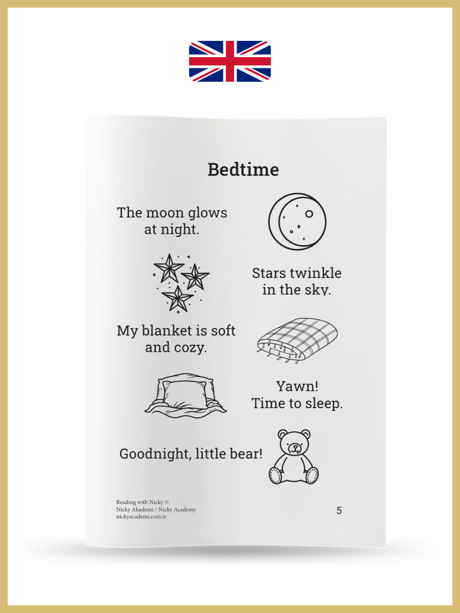 – Seviye 2+: Hikayeler yavaşça genişler (4 cümle, sonra 5…), yeni kelimeleri doğal bir şekilde tanıtır.