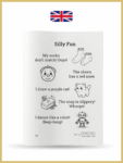 – Seviye 1: Sayfa başına 4-5 küçük hikaye (her biri sadece 2-3 cümle!) + boyamak için eğlenceli bir illüstrasyon.
