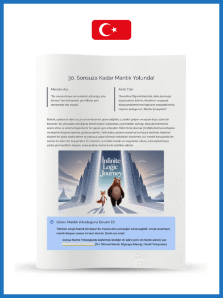 Konu Kapsamı: Açıklamanıza tam uyum: Derinlemesine nedensellik, koşullu ifadeler (Eğer-İse), mantıksal bağlaçlar (VE, VEYA, DEĞİL, kombinasyonlar), algoritmalar, basit çıkarımlar (tümceler), eleme bulmacaları (3×3 tablolar), mantık hatalarını tespit etme ve final görevi.